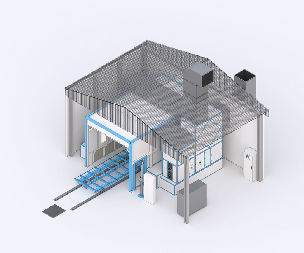 Окрасочно-сушильная камера представляет собой специализированный закрытый комплекс, предназначенный для нанесения лакокрасочных покрытий и последующей конвекционной сушки изделий в контролируемых условиях с высокой степенью защиты от пыли и взрывоопасных концентраций паров растворителей.