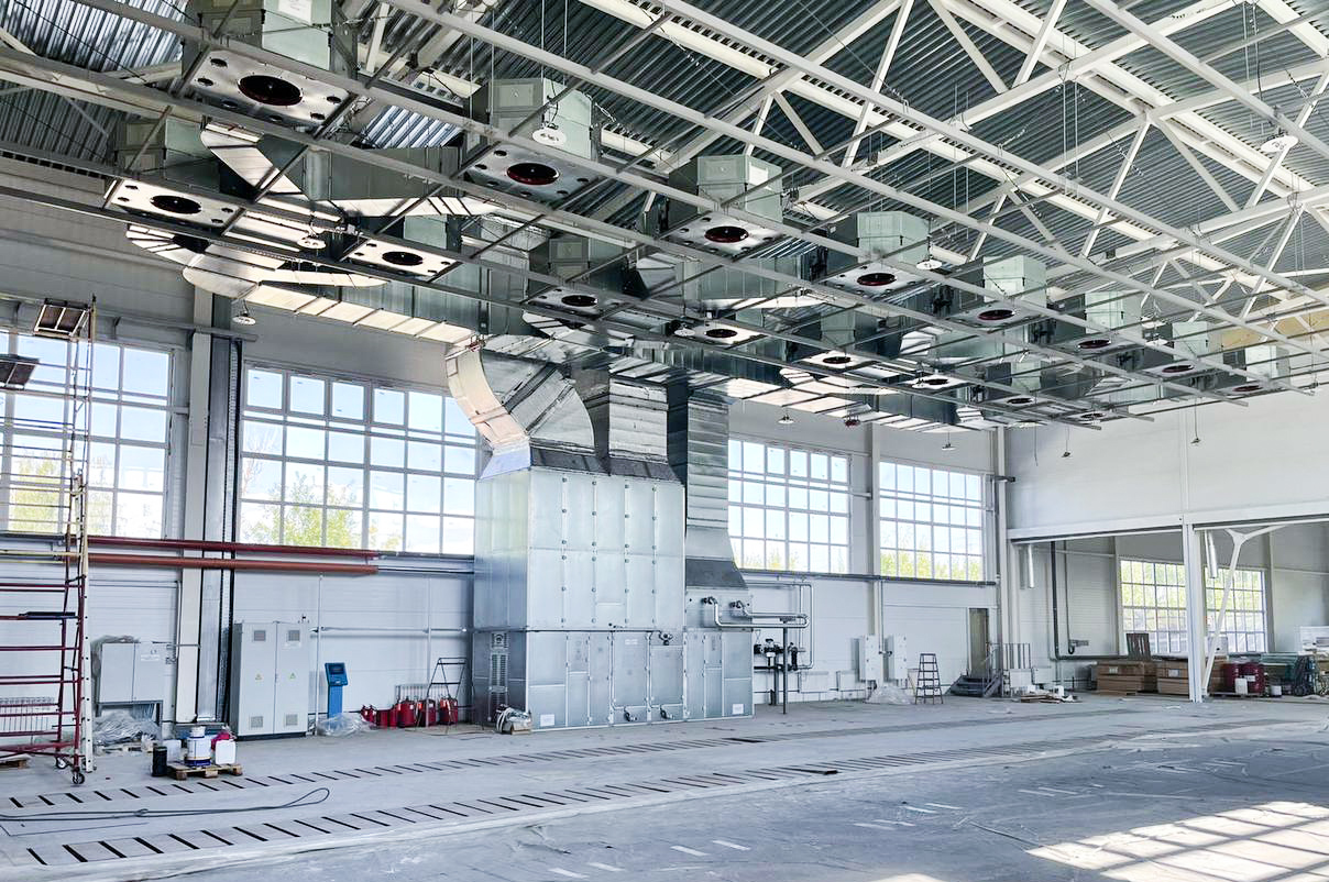 Зона открытого окрашивания оснащена 16 - ю соплами (двухпоточные, направленного действия), 32 - мя клапанами (воздушные ручные регулируемые), промышленной вентиляционной установкой мощностью 50 тыс. м3/час. В зоне установлен пластинчатый рекуператор. Переключение режимов осуществляется персоналом через сенсорную панель шкафа управления.